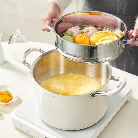 高品質ホワイト304ステンレススチーマーポット調理ポットホームレストランキャンプ用
